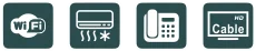 Ar condicionado, TV a CABO, Telefone com serviço de recepção, Wi-Fi gratuito de alta velocidade, mesa de trabalho, estacionamento coberto gratuito, Recepção 24 Horas e um Delicioso café da manhã incluso na diária.